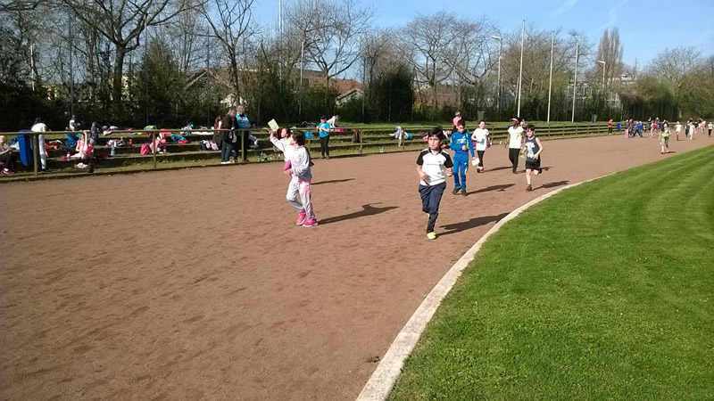 Alle Schülerinnen und Schüler der Gustav-Stresemann-Schule liefen am Mittwochvormittag, 29.03.2017 auf dem Sportplatz in der Boelckestraße ihre Runden. Jeder hatte eine halbe Stunde Zeit, um seinen Fähigkeiten entsprechend so schnell wie möglich zu laufen. Es herrschte eine großartige Stimmung bei allen Läufern, bei den Eltern und auch bei den Kolleginnen und Kollegen. Die mussten ihre Geschwindigkeit im Staffellauf gegen Schülerinnen und Schüler beweisen. Der Förderverein sorgte für körperliche Stärkung in Form von Äpfeln, Bananen und Traubenzucker. Auch hier herzlichen Dank!
